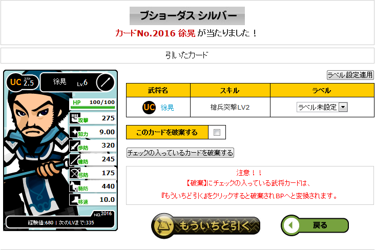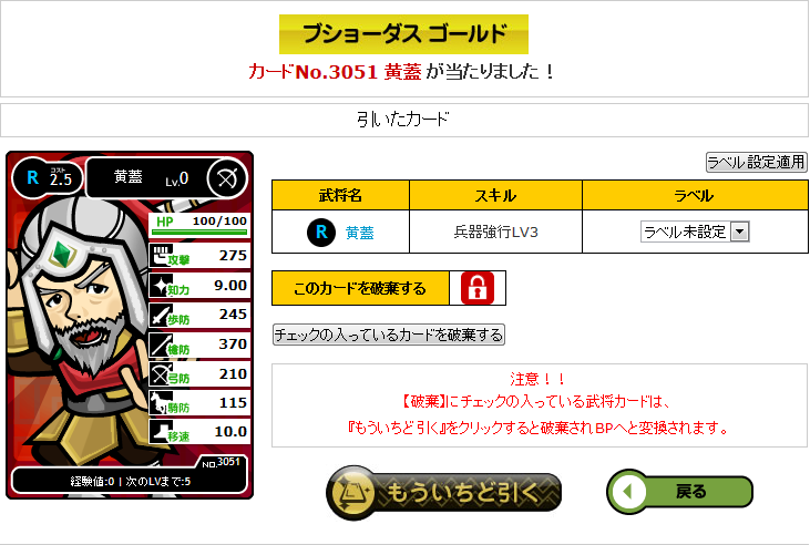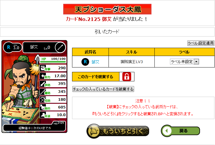 防御武将に力を入れてない私にとっては、微妙なカードですね…
